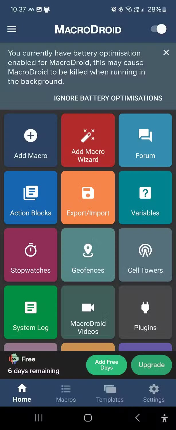 MacroDroid ist eine der ersten Apps, die Sie immer auf einem neuen Android-Smartphone installieren, um alltägliche Aktionen und App-Verhalten zu automatisieren. Es erleichtert das Einrichten von Triggern und Makros für einfache Aktionen, wie beispielsweise das automatische Erhöhen der Lautstärke beim Öffnen einer bestimmten App.