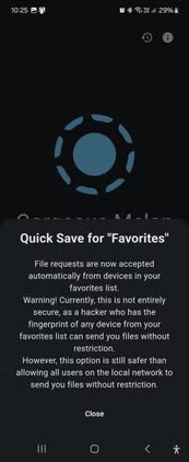 LocalSend verfügt über eine einfache Benutzeroberfläche, mit der Sie Dateien von Geräten in der Nähe senden oder empfangen können. Mit Quick Save können Sie die App so konfigurieren, dass sie automatisch Dateien von allen Geräten in Ihrem lokalen Netzwerk oder nur von Ihren Favoriten akzeptiert. Eine weitere praktische Funktion ist die Möglichkeit, APK-Dateien mit Freunden und Familie zu teilen, um den Download-Prozess zu überspringen.