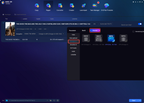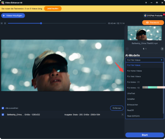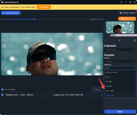 4.2.2 DVDFab Enlarger AI —DVDs, Blu-rays und andere Videos mit Hilfe von AI auf 4K hochskalieren