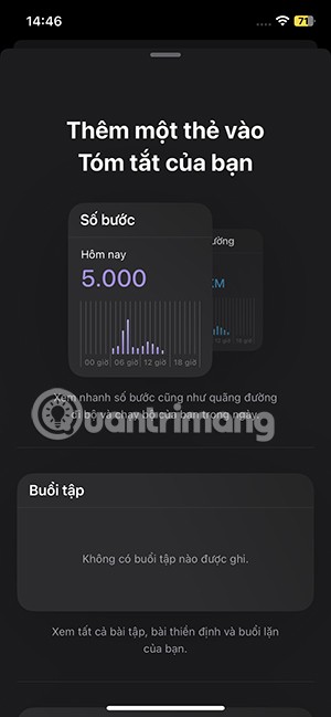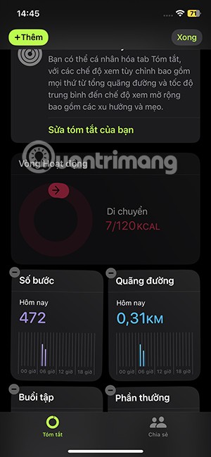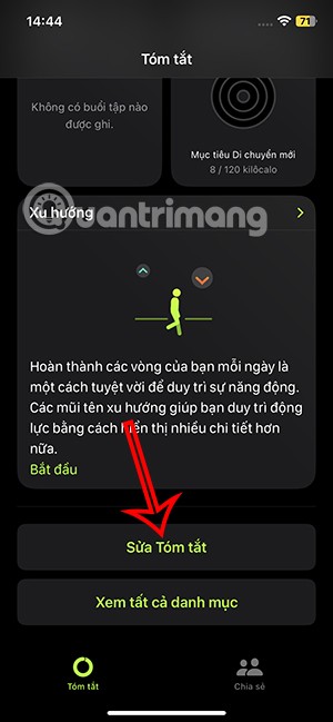 Scrollen Sie in der Fitness-App nach unten und wählen Sie „Zusammenfassung bearbeiten“ . Jetzt können wir die vorhandenen Karten auf der Seite „Zusammenfassung“ ändern.