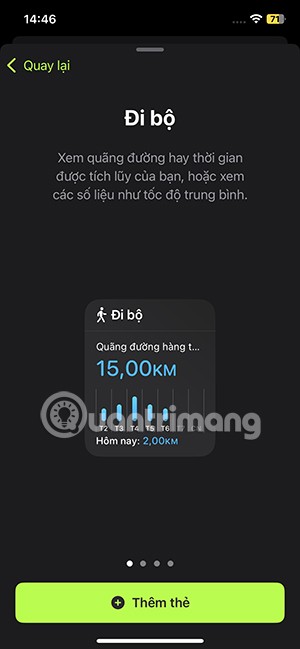 Wenn Sie auf eine Karte tippen, wird der Karteninhalt wie unten dargestellt angezeigt. Wir sehen uns die verschiedenen Karten an und tippen auf „Karte hinzufügen“ , um sie der Übersichtsseite in der Fitness-App hinzuzufügen.