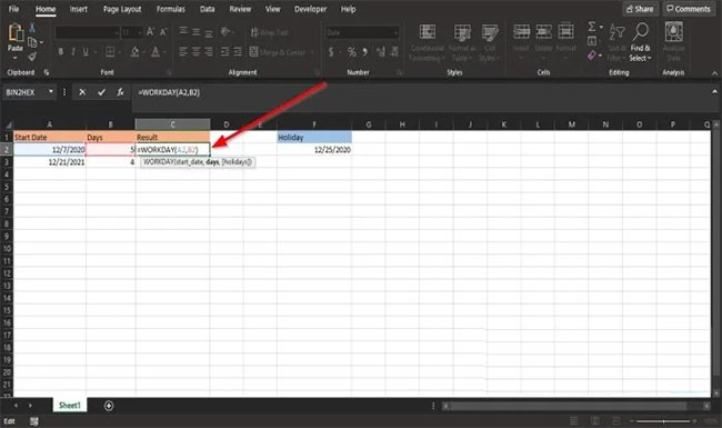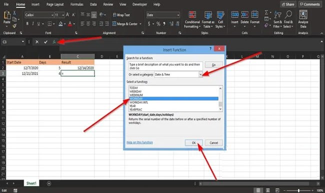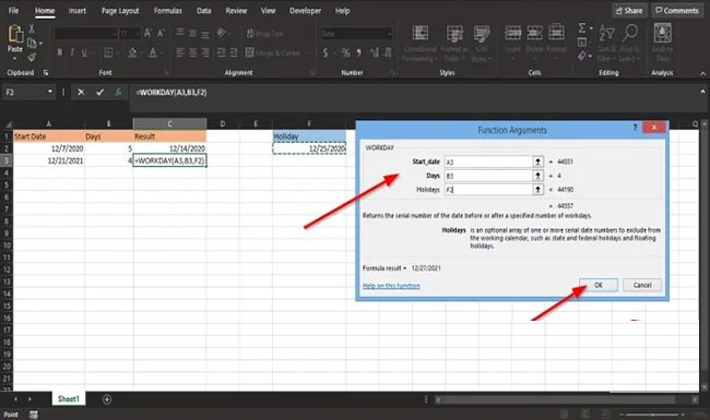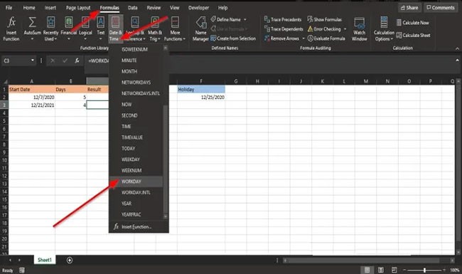 Es gibt zwei weitere Methoden, die Funktion ARBEITSTAG in Excel zu verwenden.