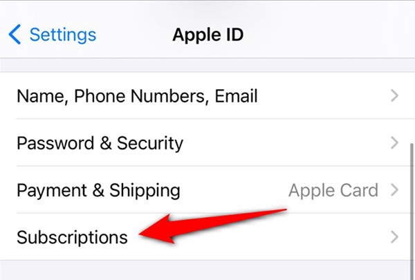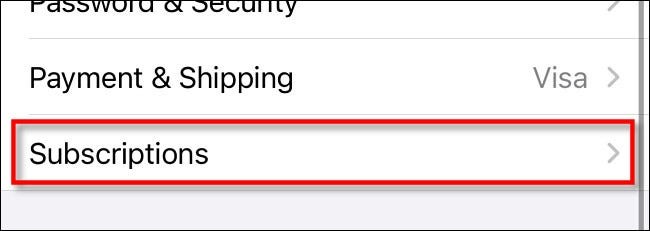 Tippen Sie im Einstellungsbildschirm der Apple-ID auf „ Abonnements “.