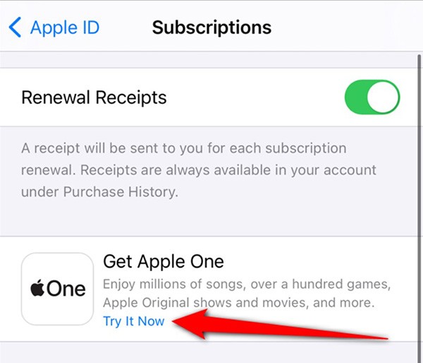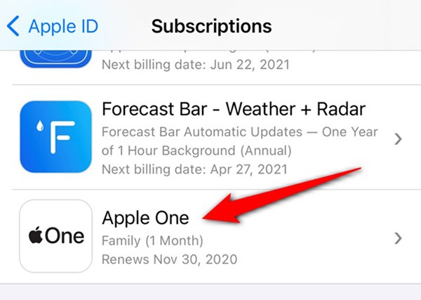 Tippen Sie in der Liste Ihrer Abonnements auf „ Apple One “.