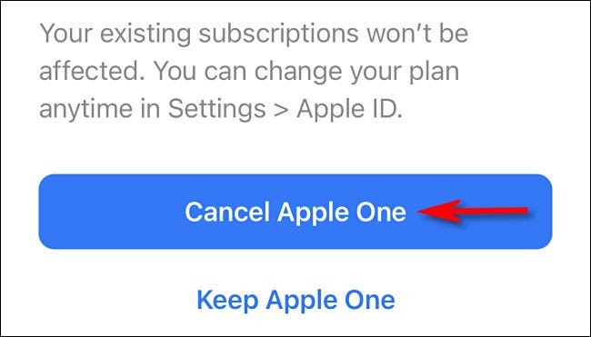 Anschließend wird eine Bestätigungsmeldung auf dem Bildschirm angezeigt. Tippen Sie erneut auf „ Apple One kündigen “.
