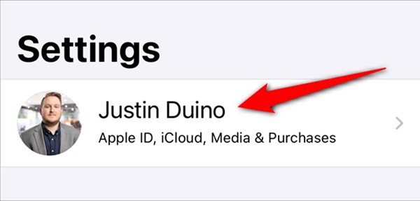 Tippen Sie im Menü „ Einstellungen “ auf Ihren Apple-ID-Namen oder Ihr Profilbild.