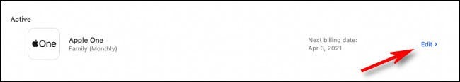 Suchen Sie in der Abonnementliste nach „ Apple One “ und klicken Sie daneben auf die Schaltfläche „ Bearbeiten “.