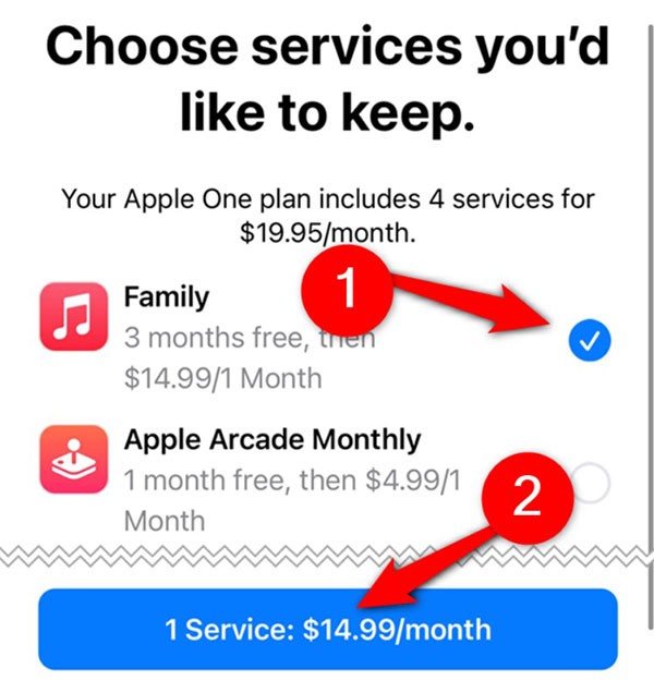 Apple wird stets sein Bestes tun, um Sie als Kunden zu behalten. Sollte der Kündigungsgrund darin liegen, dass Sie nicht alle enthaltenen Dienste nutzen, können Sie auf Einzelabonnements wie Apple Music und iCloud-Speicher umsteigen.