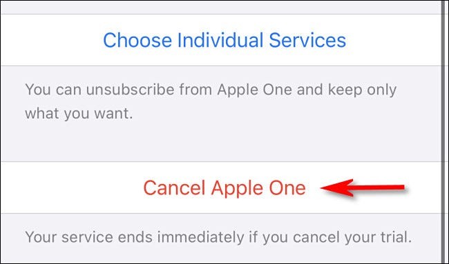 Scrollen Sie nach unten und tippen Sie auf „ Apple One kündigen “.