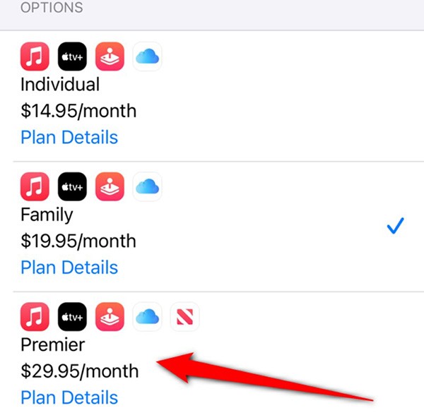 Wählen Sie aus den drei oben genannten Plänen den Apple One-Abonnementplan aus, den Sie ändern möchten.
