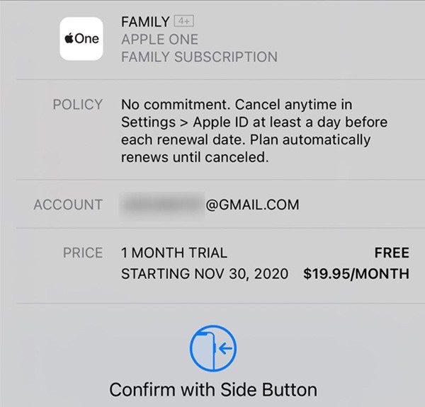 Ein Popup-Fenster zur Bestätigung Ihres Abonnements wird angezeigt. Alle Richtlinien, Preise und Zahlungsinformationen werden hier angezeigt. Doppelklicken Sie zur Bestätigung die Seitentaste (oder die Home-Taste).