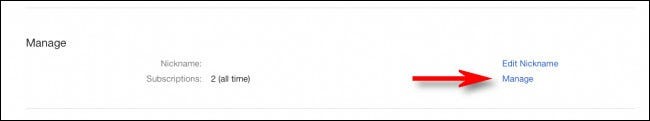 Scrollen Sie im Fenster „Kontoinformationen “ nach unten, bis Sie den Abschnitt „ Verwalten “ sehen. Klicken Sie neben der Beschriftung „ Abonnements “ auf die Schaltfläche „ Verwalten “.